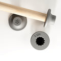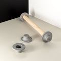 This 7.25" Mini Rolling Pin is made for rolling smaller amounts of dough out to 1/2" thickness. Our end caps fit 3/4" dowels. An unfinished birch or maple dowel is included.